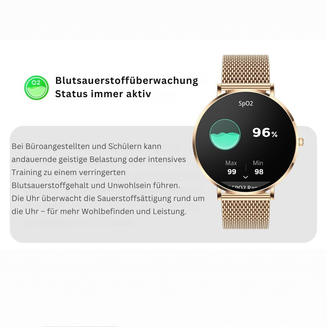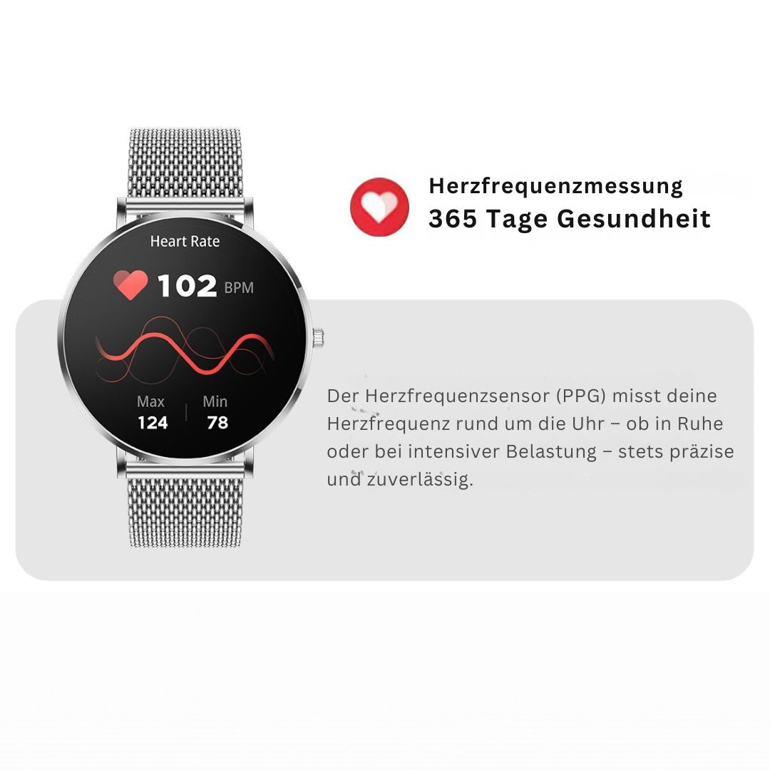 So leicht, so elegant, so WatchMe – Glow! Setze mit ihrem schlanken Design und maximalem Komfort neue Maßstäbe. Das ultraschlanke 6,8 mm Gehäuse und das 43 mm Zifferblatt vereinen minimalistische Leichtigkeit mit luxuriösem Design. Eine Smartwatch, die Ästhetik und Komfort perfekt miteinander verbindet.